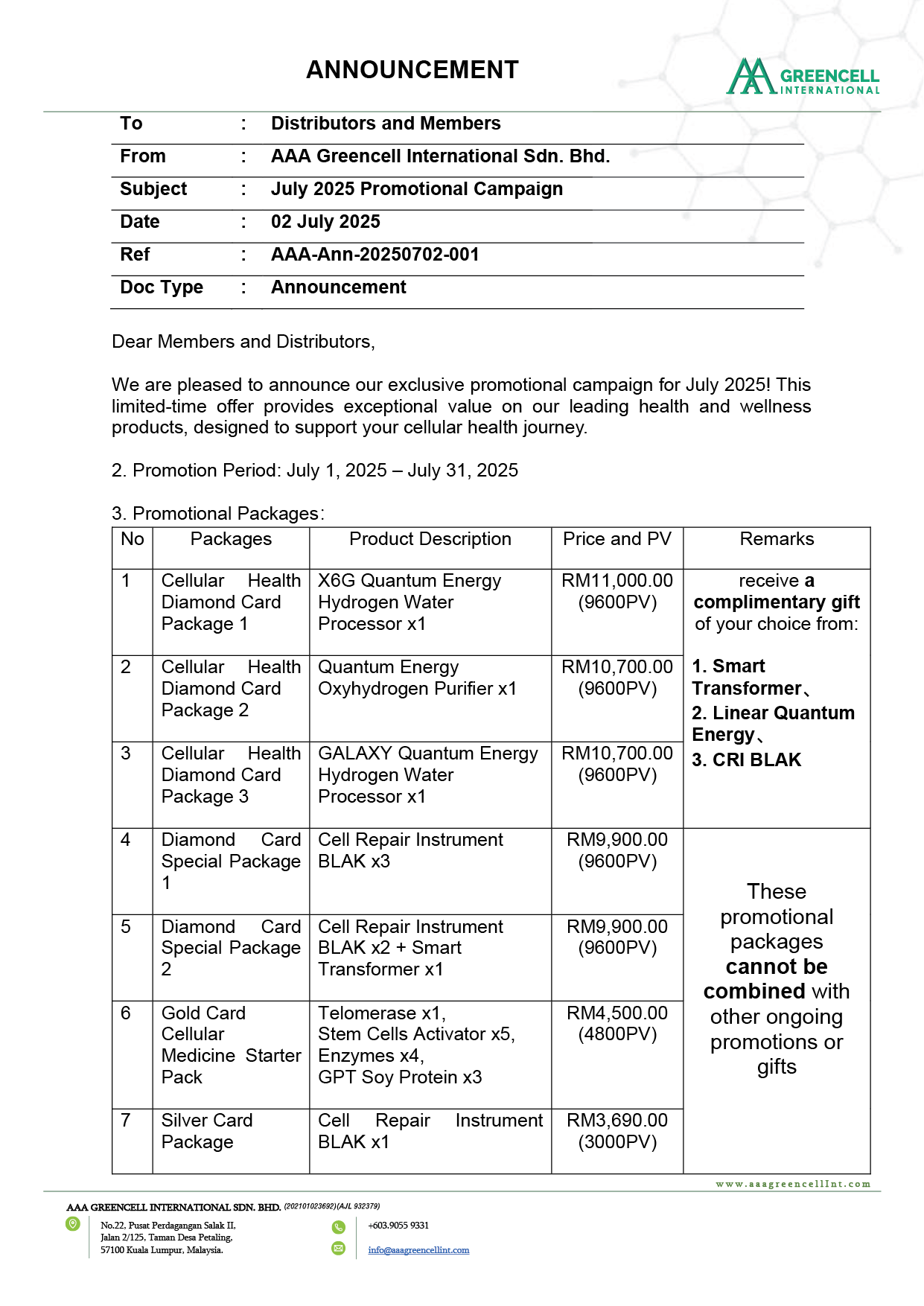 © 2025 AAA GREENCELL INTERNATIONAL SDN BHD.