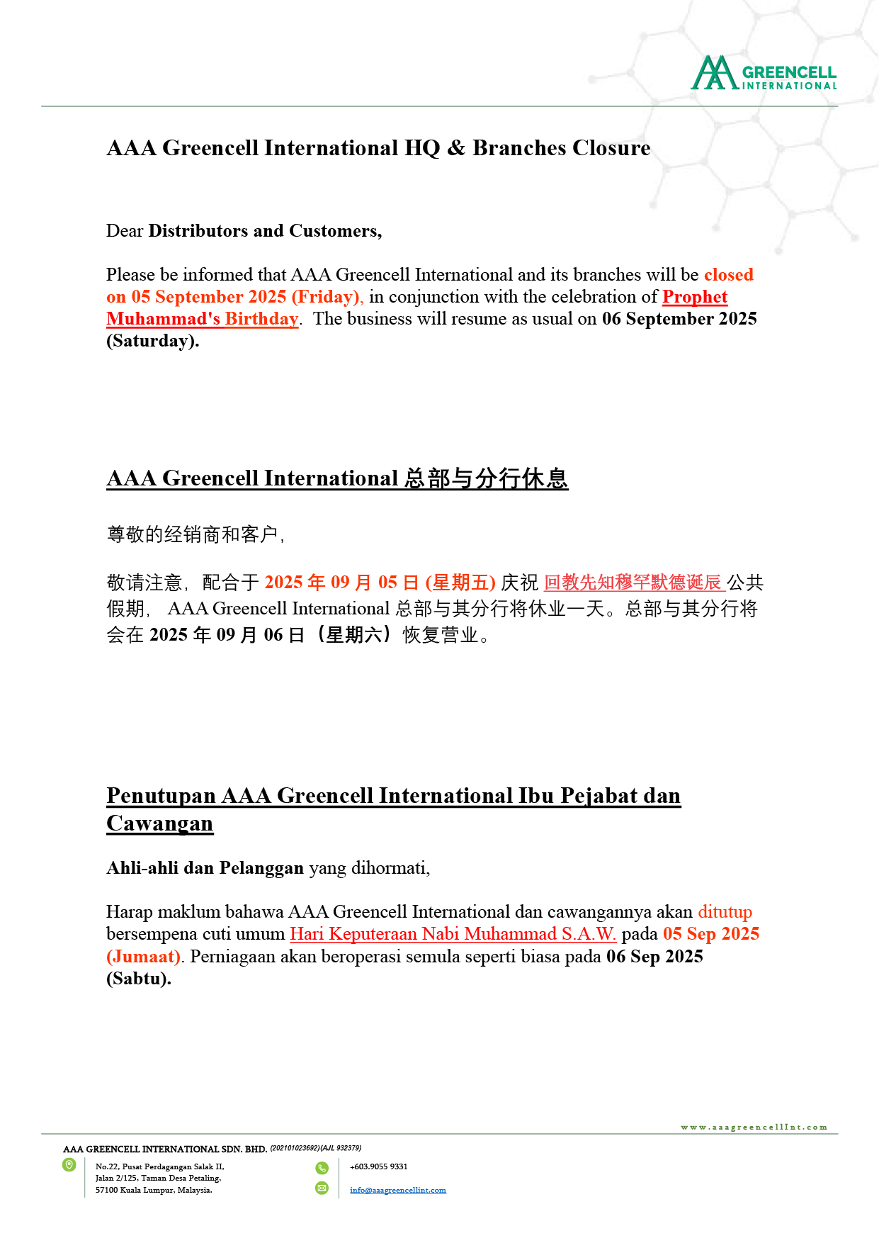 © 2025 AAA GREENCELL INTERNATIONAL SDN BHD.